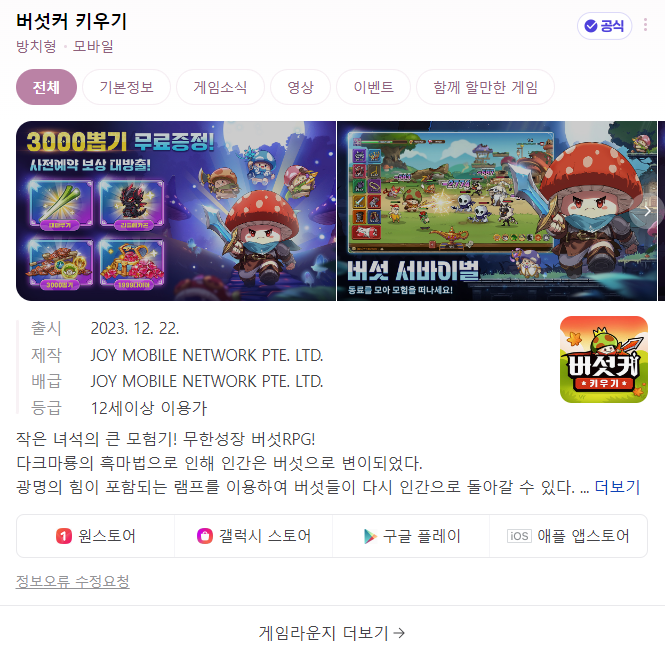| 버섯커 키우기 15일 - 쿠폰 최신 업데이트 및 진행(소울정수 이벤트) (1) | 2024.01.30 |