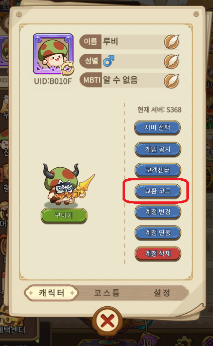 버섯커 키우기(아래쪽 쿠폰)