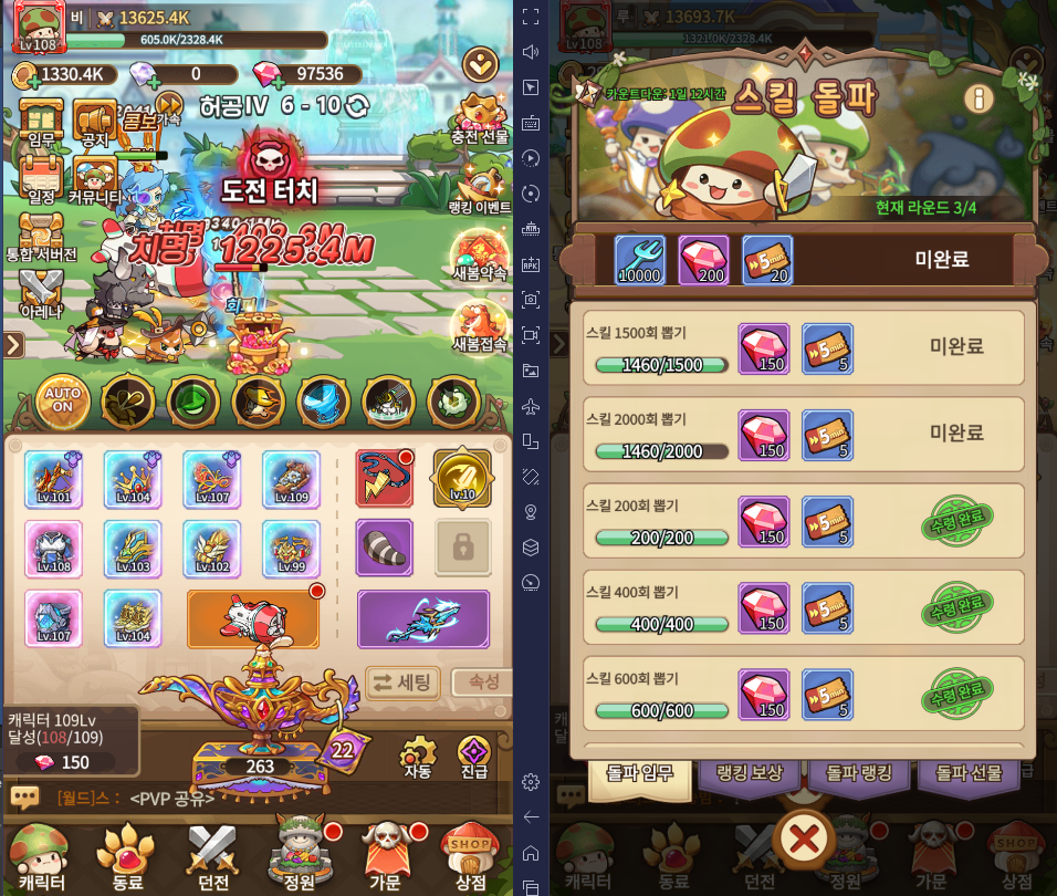 가지고 있던 5000개정도의 스킬뽑기를 사용하면서 2라운드를 클리어하고 3라운드 진행