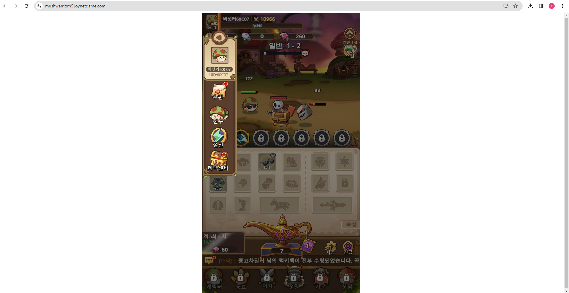 버섯커키우기를 웹버전으로도 할 수 있다. 아래 링크