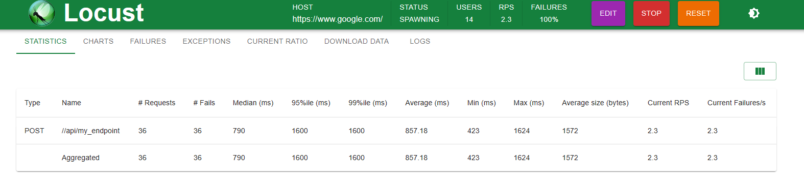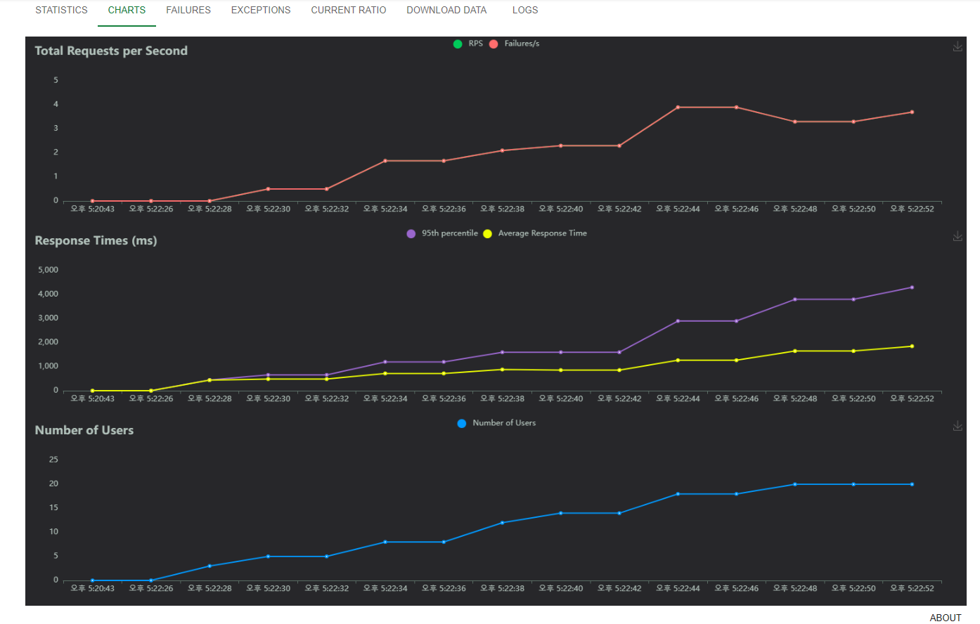 http://localhost:8089/ 에서 웹 UI를 사용하여 테스트 결과를 실시간으로 모니터링하고 분석