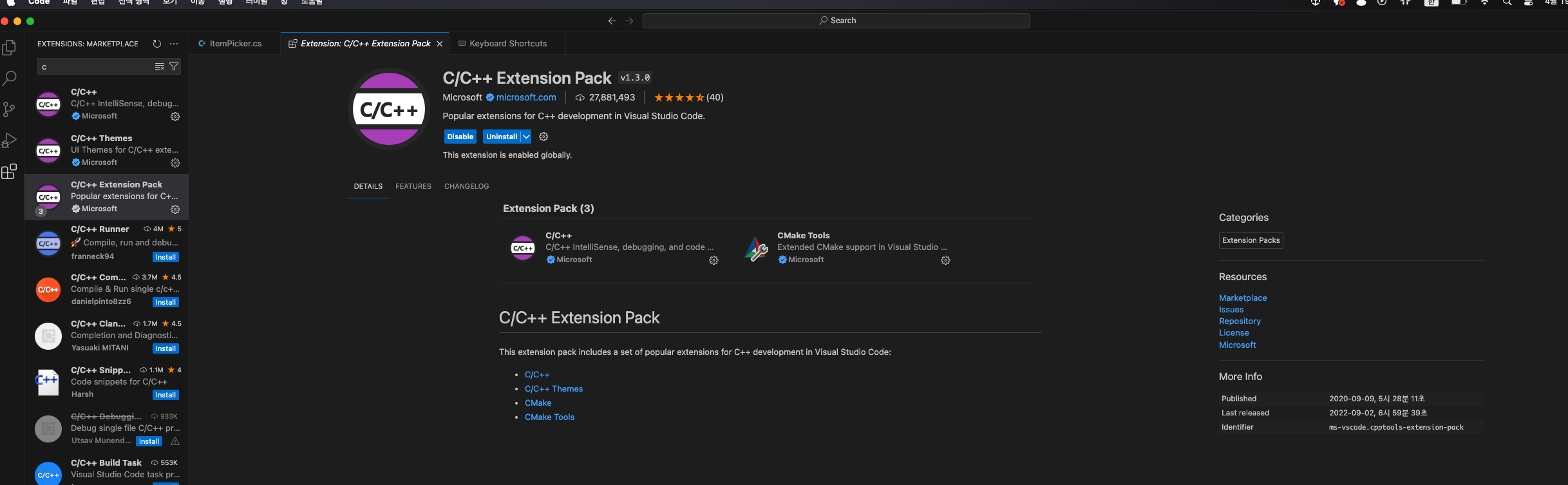 Code - 기본설정 - 키보드 구조를 들어가서 확인해보니 설정이 잘 되어 있다.