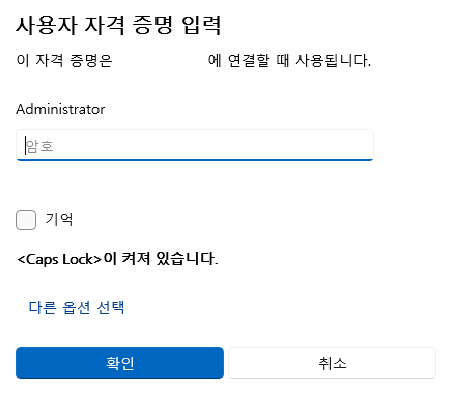 - 계정 정보 입력: 연결을 시도하면 계정 정보 (호스트 PC의 사용자 이름과 암호)를 입력하라는 창이 나타납니다. 정확하게 입력 후 "확인" 버튼을 클릭합니다! 🔑