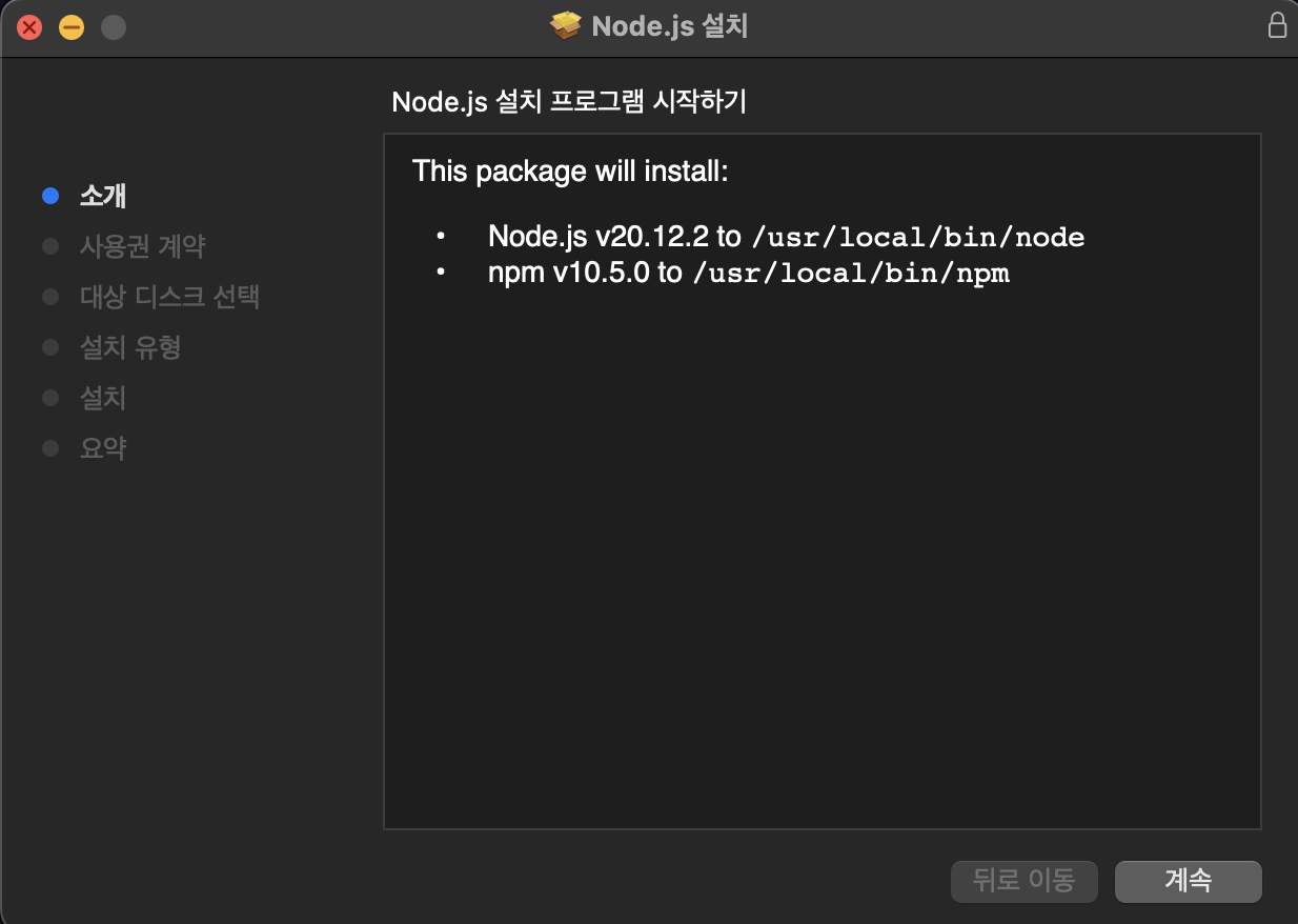 Mac에 Node.js를 설치하기 위해 Homebrew를 사용해야하므로 설치가 안되어있다면 위 링크로 설치진행.