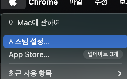 ㅁ 맥 왼쪽 사과표시를 클릭하고 시스템 설정을 클릭