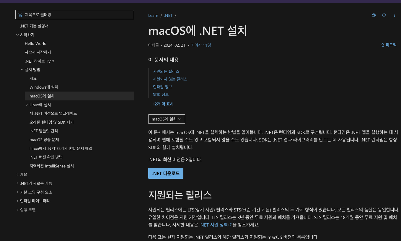 macOS에서 .NET을 설치하는 방법에 대한 간단한 설명해보자