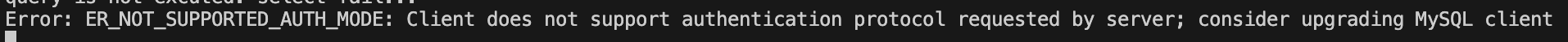 User Error: ER_NOT_SUPPORTED_AUTH_MODE: Client does not support authentication protocol requested by server; consider upgrading MySQL client