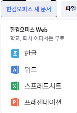 클릭 후 아래와 같이 한글, 워드, Excel, PPT 종류 중 원하는 문서를 클릭