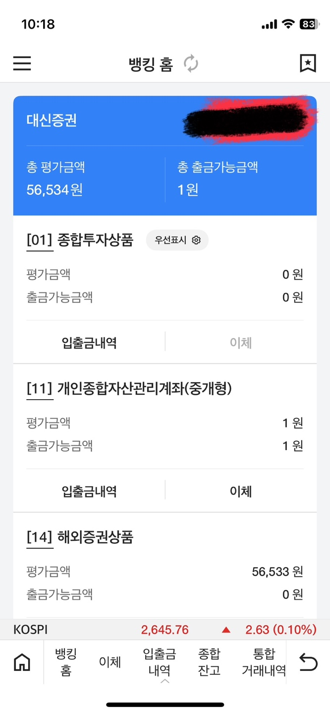 대신증권은 "전자금융거래 제한 상태"라고 뜨면서 이체가 안 되더라고요. 😨