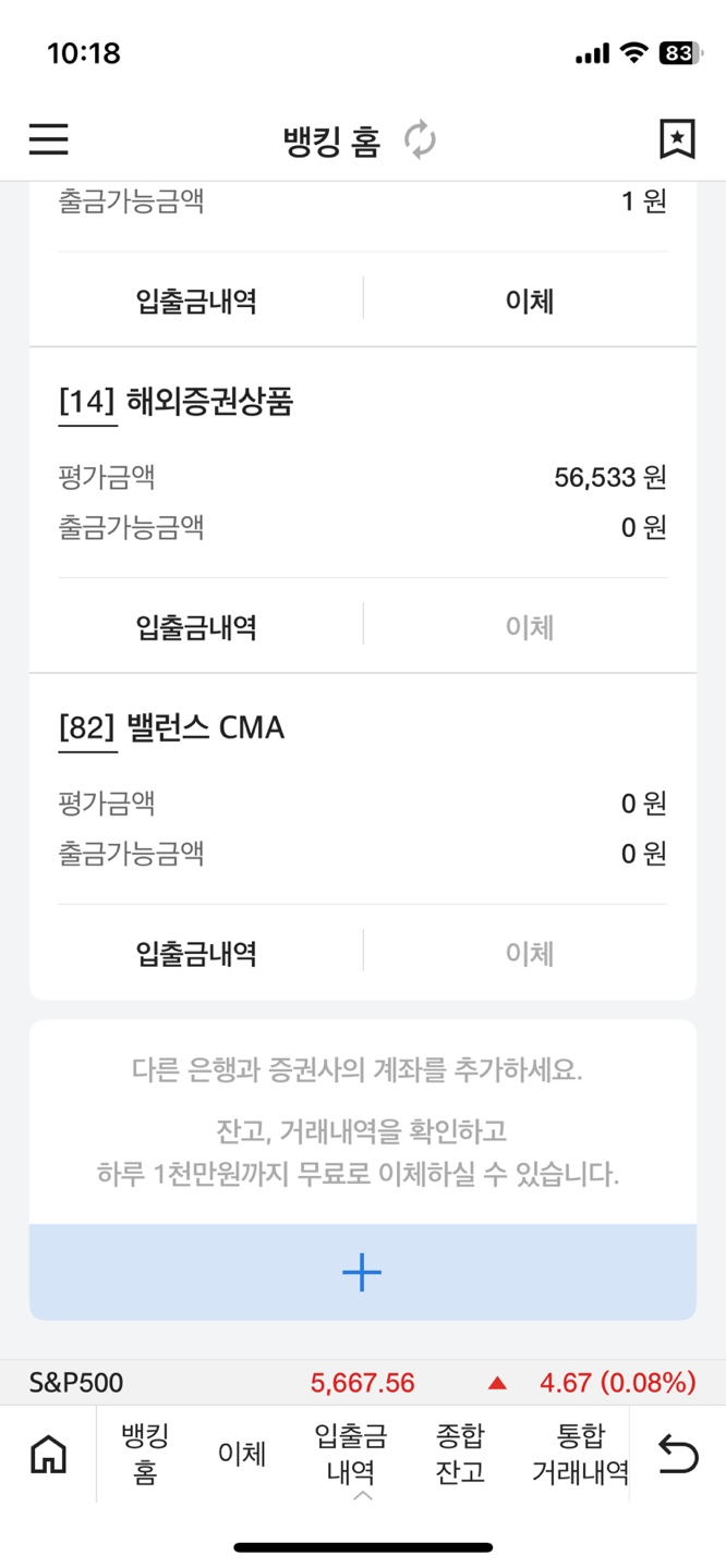 - 다시 뱅킹 홈에서 밸런스 CMA 계좌 선택