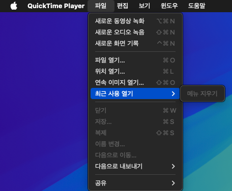 1️⃣ QuickTime Player 앱 내에서 최근 항목 지우기