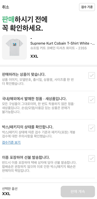 판매 관련 약관 및 정책에 동의하신 후, "판매 계속" 버튼을 눌러 다음 단계로 진행합니다! 📜