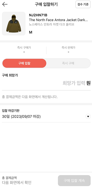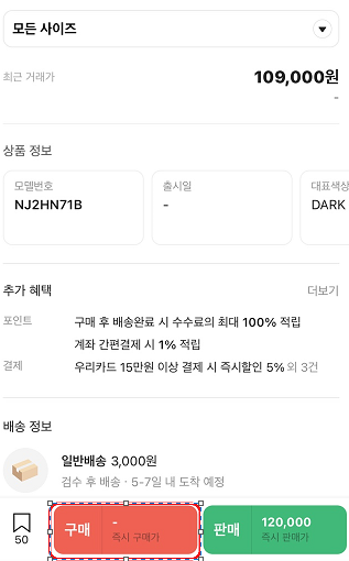 - 💰 구매 입찰: 내가 원하는 구매 가격을 제시하고, 해당 가격에 판매하려는 판매자가 나타날 때까지 기다리는 방식입니다! 조금 더 저렴하게 구매하고 싶다면 이 방법을 선택하세요! 마치 "이 가격이면 살 의향 있어요!" 하고 가격을 제시하는 것과 같습니다!